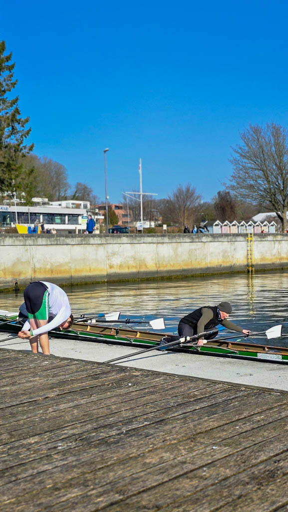 Ungewohnt mal diesen Blick genießen zu dürfen. Vor ein paar Wochen war die Förde noch alles andere als einladend: Kalt, windig oder seit langen auch mal wieder zugefroren. Und doch liegen wir nun wieder so zahlreich in der Hörn. In voller Vorfreude, und vielleicht auch mit der Hoffnung, dass man das Rudern doch noch nicht verlernt hat.